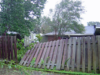 | Around the corner from our house, a tree from one yard fell on a neighboring house. |